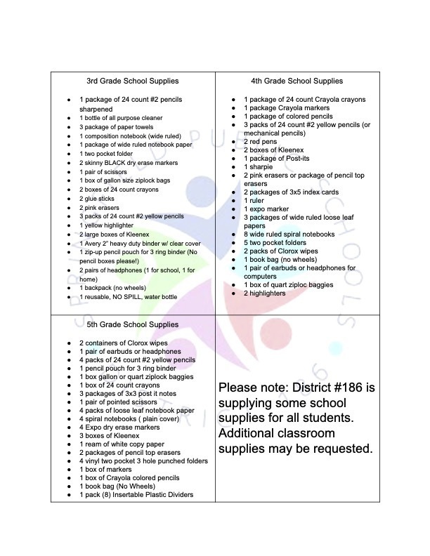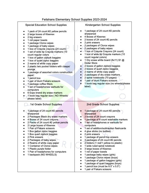 2023-2024 Feitshans School Supply List